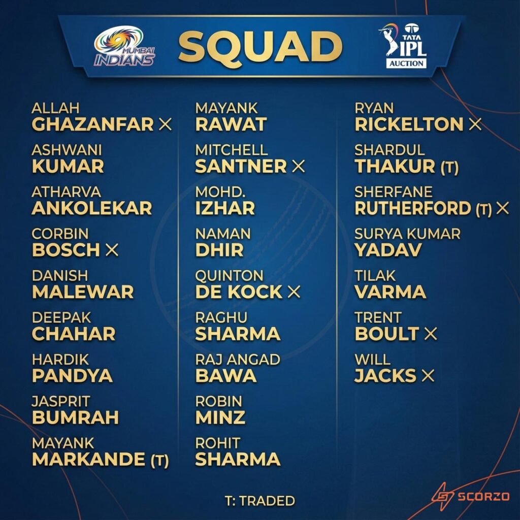 Mumbai Indians did most of the buying and retaining even before the mini auction began, which is why they entered the bidding war with the smallest purse of ₹2.75 Crore. Despite their limited purchase in the mini-auction, the MI side looks star-studded, with match-winners across their entire squad. Additionally, they managed to substantially consolidate their pace battery with the return of Shardul Thakur in exchange for Arjun Tendulkar with the Lucknow Super Giants. With the IPL season on the horizon, Scorzo reviews the team the Mumbai Indians have built this season.
