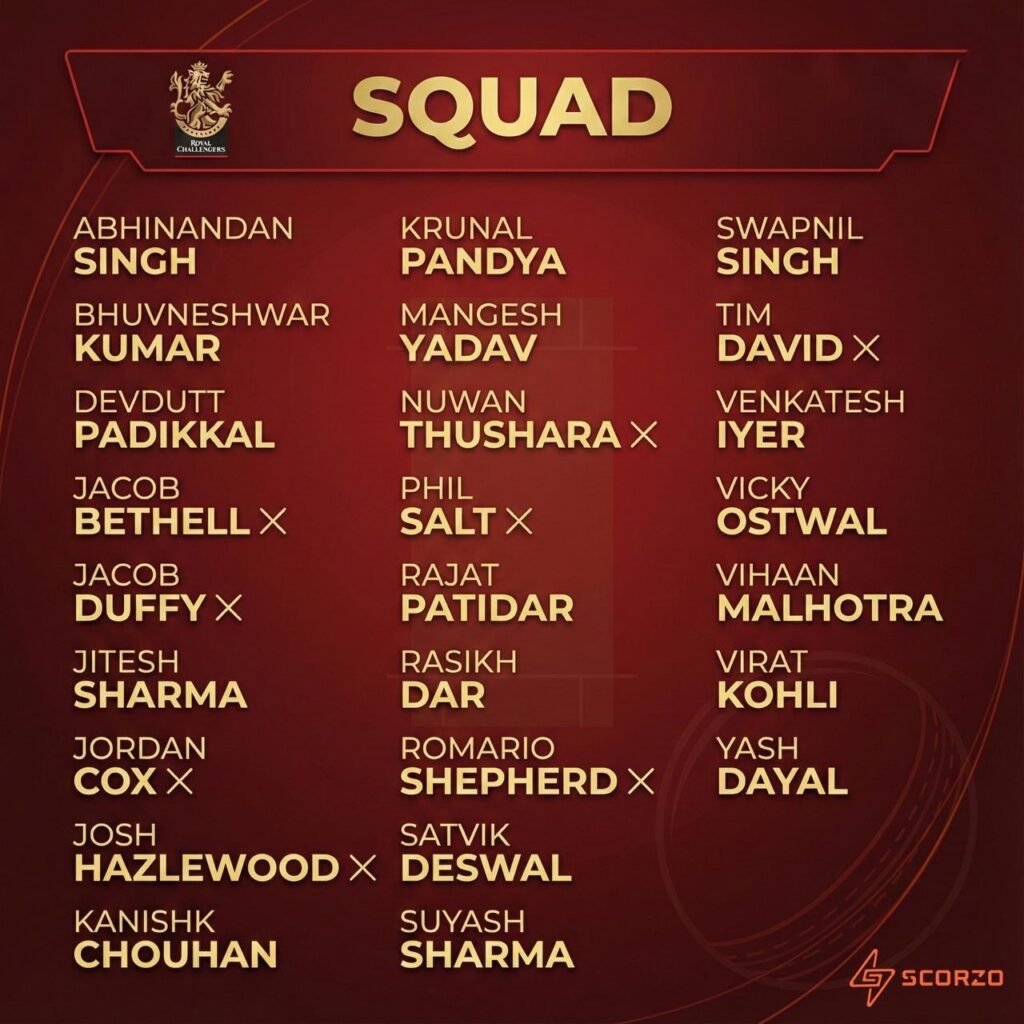 A bright emerging prospect in the form of Mangesh Yadav, who can step up in the ranks as a replacement for Yash Dayal. In addition to these emerging Indian players, the addition of Jacob Duffy and Jordan Cox provides vibrant overseas options for the defending champions. In light of these significant additions, we at Scorzo have reviewed the Royal Challengers Bengaluru squad ahead of IPL 2026.